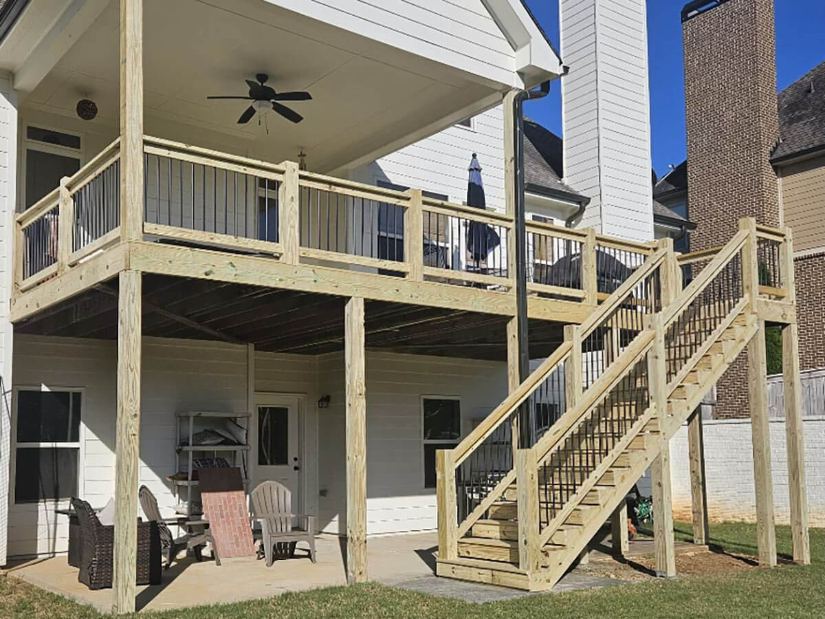 Our sturdy railings enhance safety and style on your North Georgia property. From surrounding a wrap-around porch to completing a deck or patio, we build railings that are strong, sturdy, and built to last. Trust us to use the best materials and code-compliant designs. Our stylish railings create functional, safe beauty.